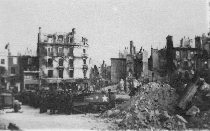 11 h 30. La Cie B, le Major Hyde en tête, atteint le Boulevard des Alliés