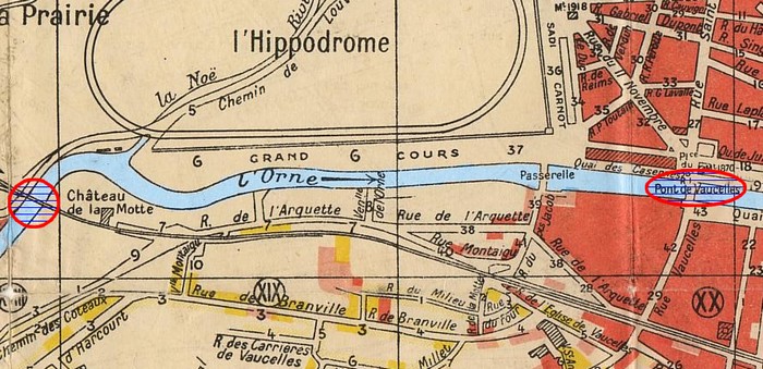 Carte 7F/I 1943, Colombelles à l'est de l'Orne et la rue de lébisey.