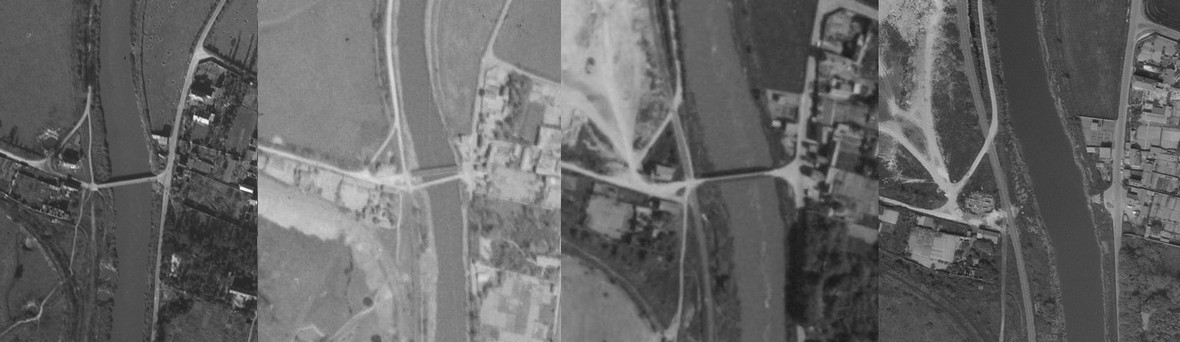 L'évolution du pont après la guerre grâce à des photos aérienne de l'IGN: