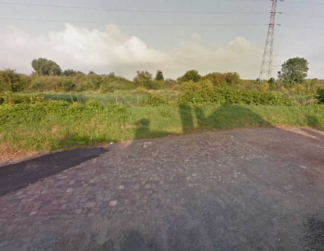 Source GoogleMaps. Vestiges du pavage à l'entrée du pont rive droite face au N°3 rue de l'Orne