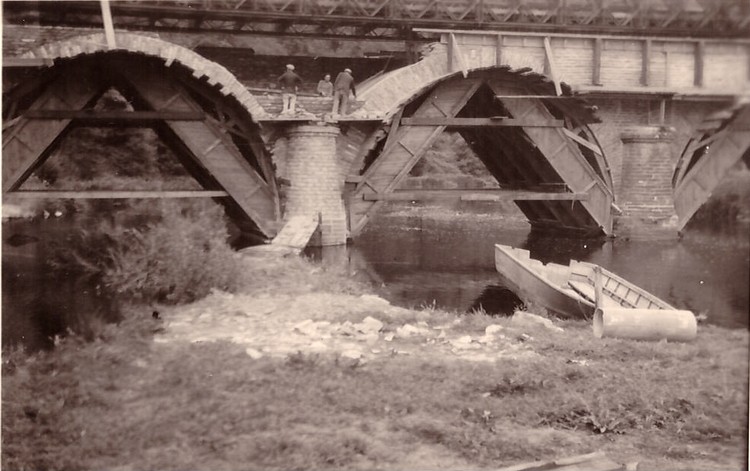 La photo, ci-dessous, montre des poutres clouées allemandes (stockées rue de Formigny à Caen) réutilisées par les Ponts et Chaussées comme cintre au pont de la Mousse à Saint Rémy sur Orne en 1946-1947