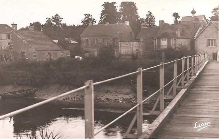 Le 27 août 1946 le pont en bois est en place, dans le triangle sur la rive gauche le bistro LAZARRO; dans les années 50 renforcement des poutres par des cornières métalliques et contreventement de la palée centrale par les Ponts et Chaussées.