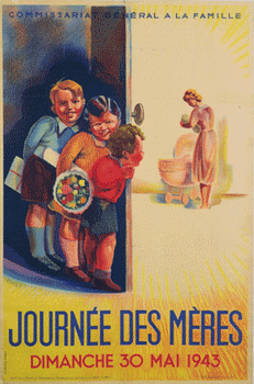 Note de MLQ; M. Marcel Le Bot) Bref dans une atmosphère sympathique, nous restions tout à fait dans la note du commissariat général.Une affiche de la fête des mères 1943 ornait même un des murs.
