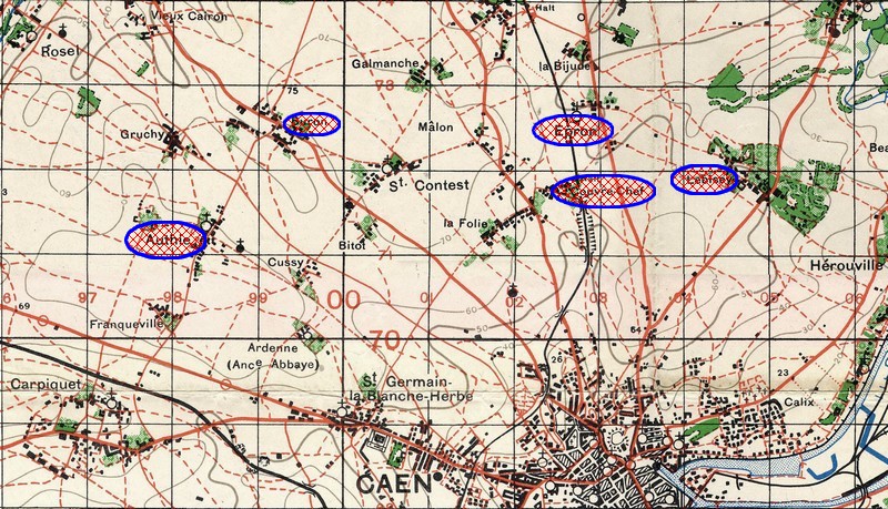 L'orphelinat d'Epron (du père Robert), étant à Couvrechef dans la ligne de feu de l'autre côté des lignes (Lebisey, Couvrechef, Buron, Authie, communes entourant Caen),