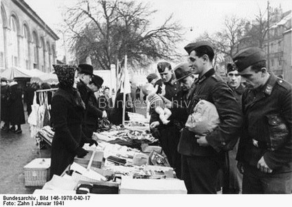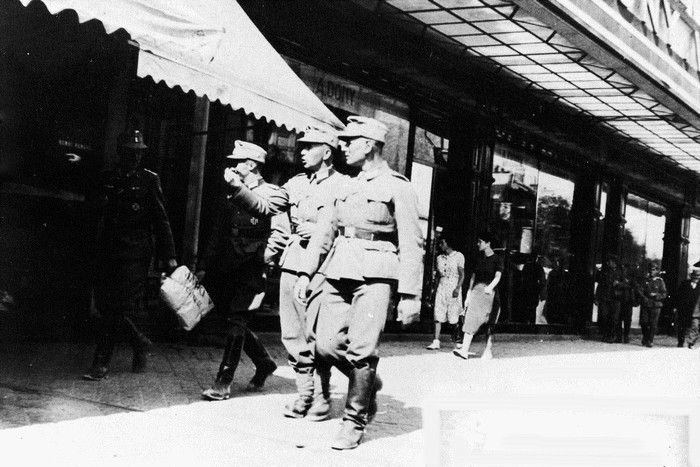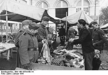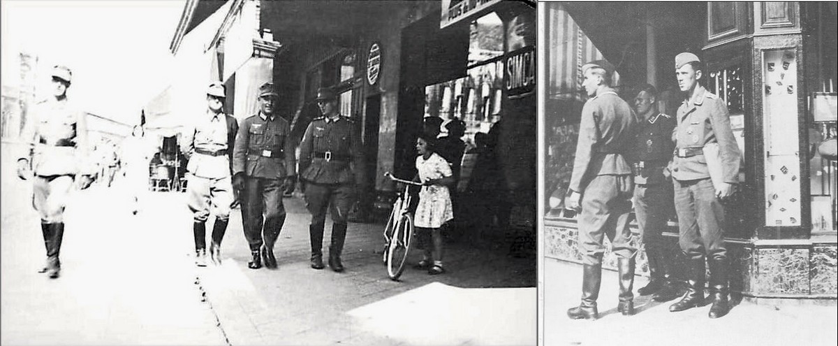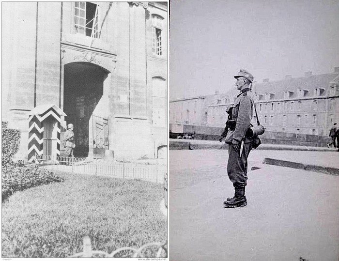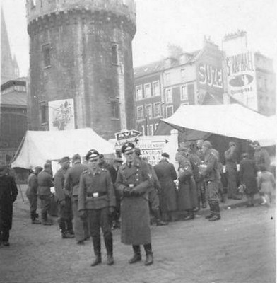 Soldats allemands au marché Saint-Pierre. Au même endroit quelques années plus tard d'autre uniformes.