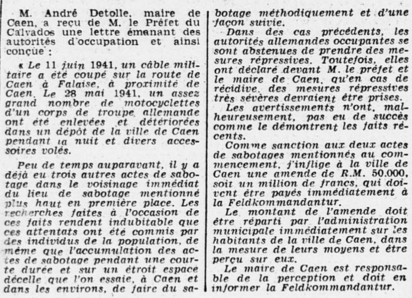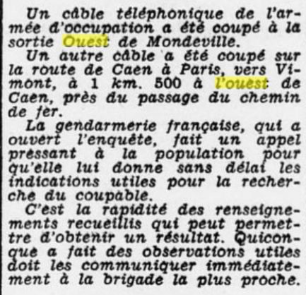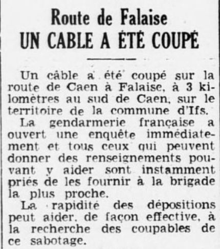 Ouest-Eclair du 21 janvier 1941. Ils seront repris le 26 janvier à Condé sur Vire