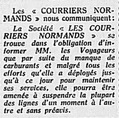Les Courriers Normands décident le passage au gazogène, une usine à charbon de bois est installée dans une annexe de la gare Saint Martin.
