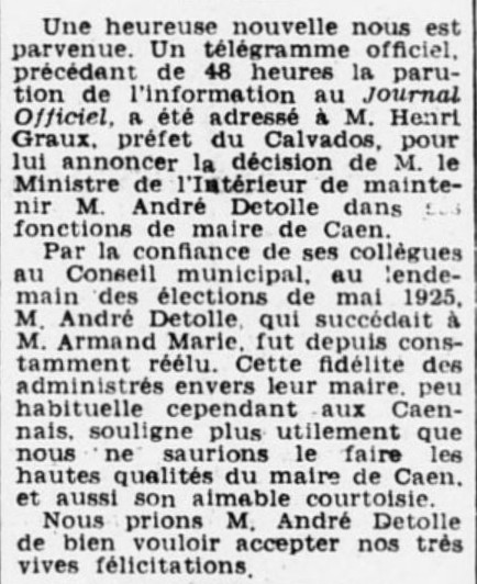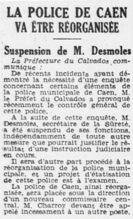 Dans la police le nouveau chef de la Sûreté est désigné. M. le Maire de Caen