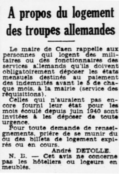 Janvier 1941, La police caennaise regrette que des soldats allemands vivent en concubinage avec des prostituées et dénonce certaines maisons de la ville qui « sont de véritables officines de débauche échappant à tout contrôle, car occupées exclusivement par des militaires allemands ».