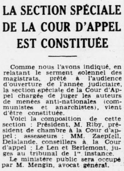 Les huit inculpés ont été écroués. Ils seront jugés le 14 mars 1941 et condamnés