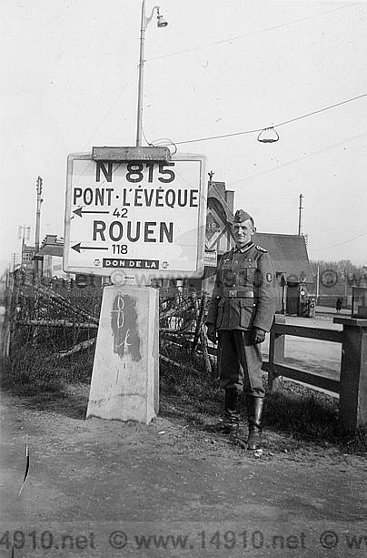 Source à gauche: Collection Télitchko, page 18 de ce livre, deux Feldgendarmen Place St Pierre. A droite, source, un Feldgengarme dans un side-car.