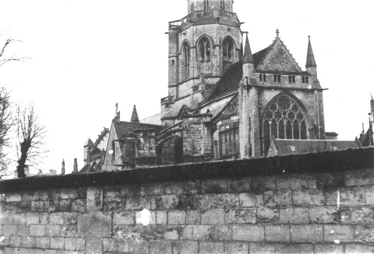 Photo coll. Fredo, prise durant l'occupation. L'église Saint-Étienne-le-Vieux, au premier plan le mur des jardins de la préfecture le long du Bd Bertrand.