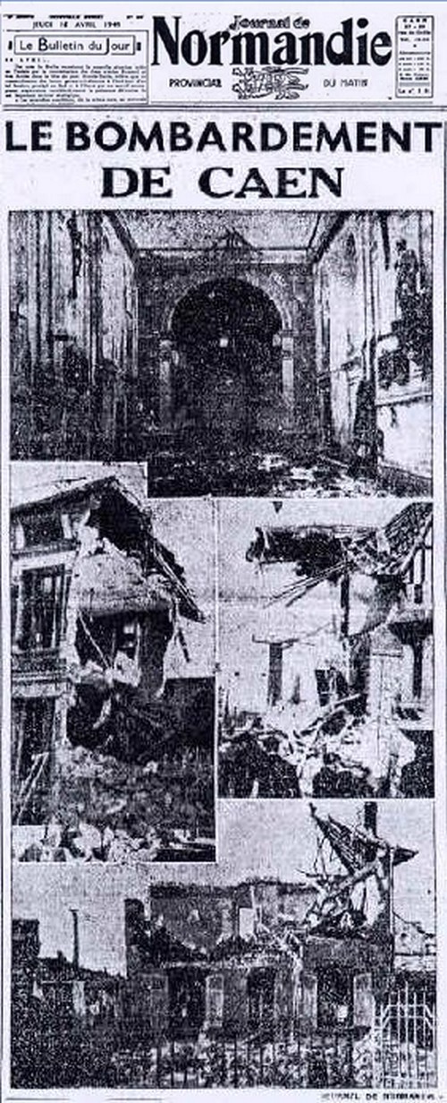 Les entrepôts Angot et Delannoy situés Cours Montalivet ont été littéralement pulvérisés et un violent incendie s'est déclaré dans les décombres provoqués par l'éclatement des fûts d'alcool et de vin qui s'y trouvaient entreposés pour le besoin du Ravitaillement civil. Cours Cafarelli, les bâtiments de l'entreprise Gauquelin – déjà atteints par un précédent bombardement – ont été anéantis. Une bombe est tombée également Quai de Juillet, sur l'asile de nuit qui a été gravement endommagé. Le quartier de la Demi-Lune avait reçu les premières bombes : là des maisons ont été atteintes et les dégâts sont considérables. Dans les rues d'Auge, de Formigny, Boulevard Leroy et à la Demi-Lune on signale une dizaine de points de chutes. Dans ce même quartier, une dizaine de maisons se sont écroulées.