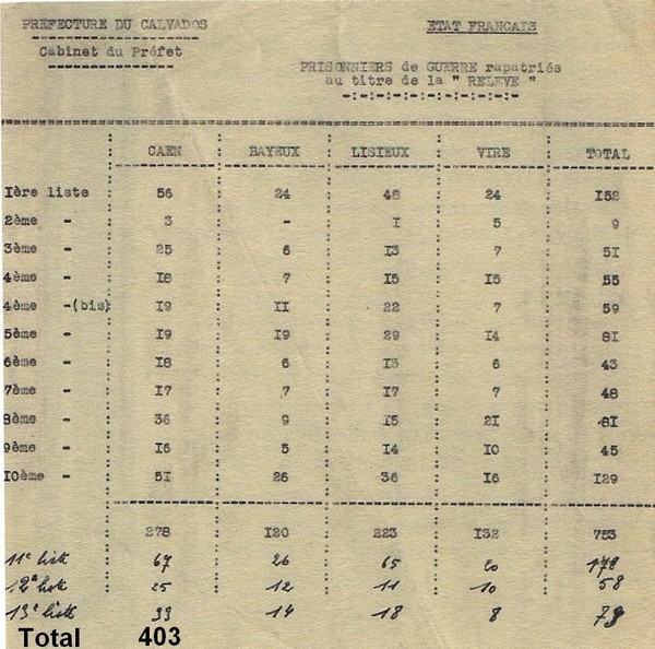 403 prisonniers de l'arrondissement de Caen ont été rapatriés au titre de La Relève.