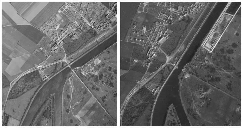 Photos aériennes IGN 1955 et 1960, entre les deux dates le pont est démonté.