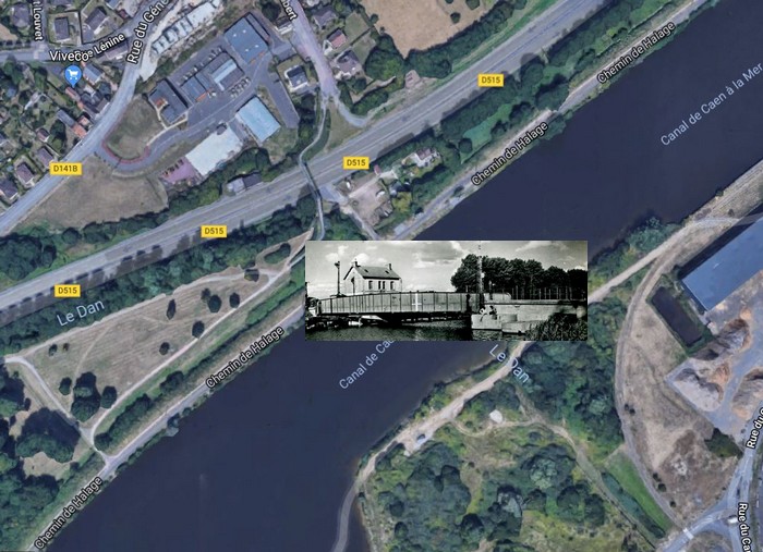 Voir ici un agrandissement et sa position sur le canal en aval du pont de Colombelles