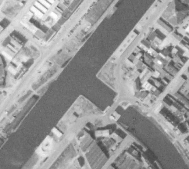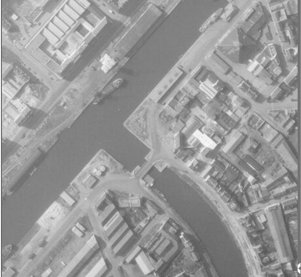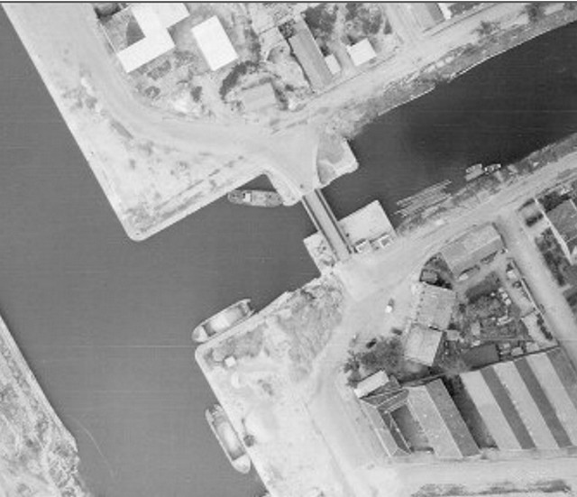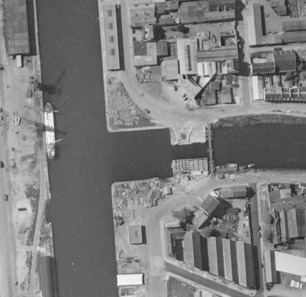 Photo IGN 20 avril 1955. Le pont tournant de la Fonderie est en service.
