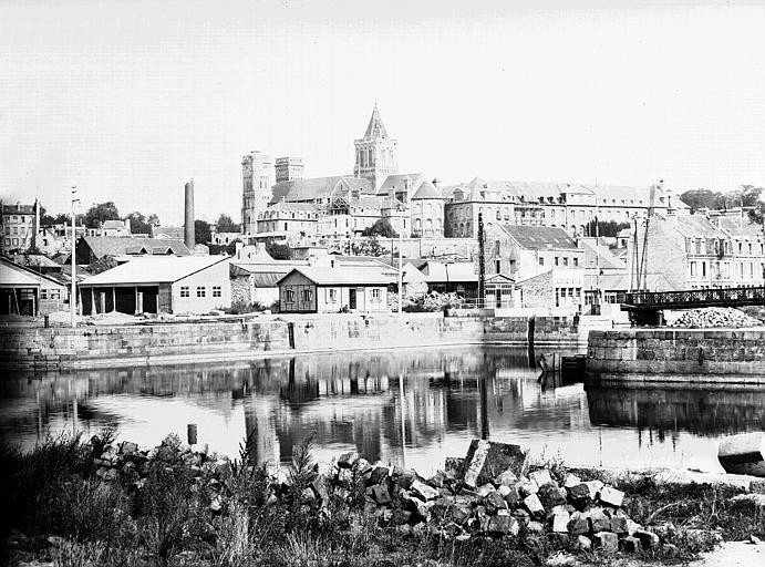 A droite le Shields bridge vu de l'extrémité du quai Caffarelli. A droite les immeubles N°9 et 11 de l'avenue de Tourville. En arrière-plan l'abbaye aux Dames.