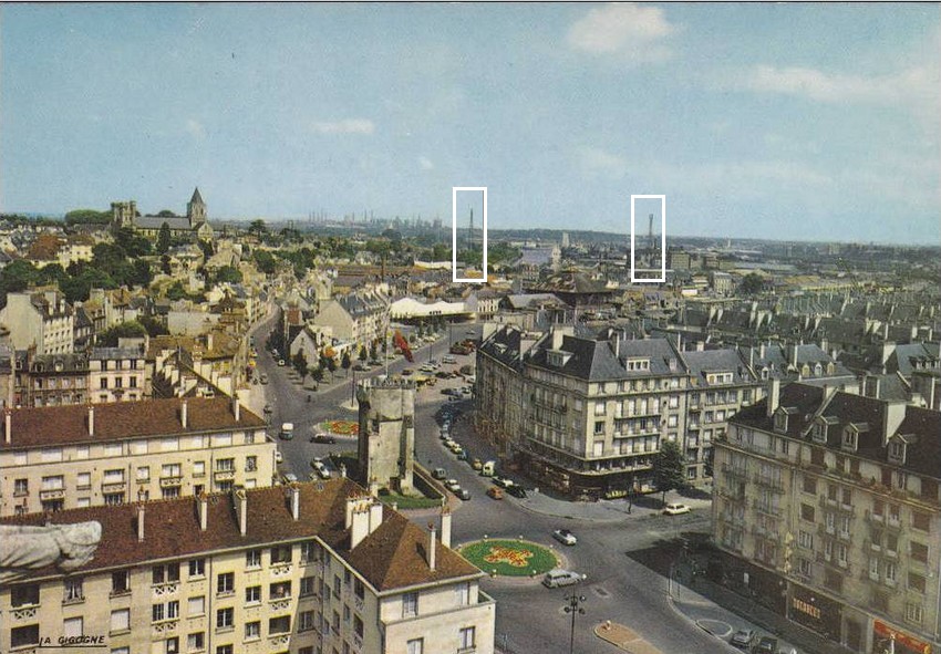 Sur plusieurs photos prisent dans le même quartier de Caen à l’Est de Saint Jean apparaissent trois grands pylônes métalliques dont j’ai cherché longtemps l’utilité.