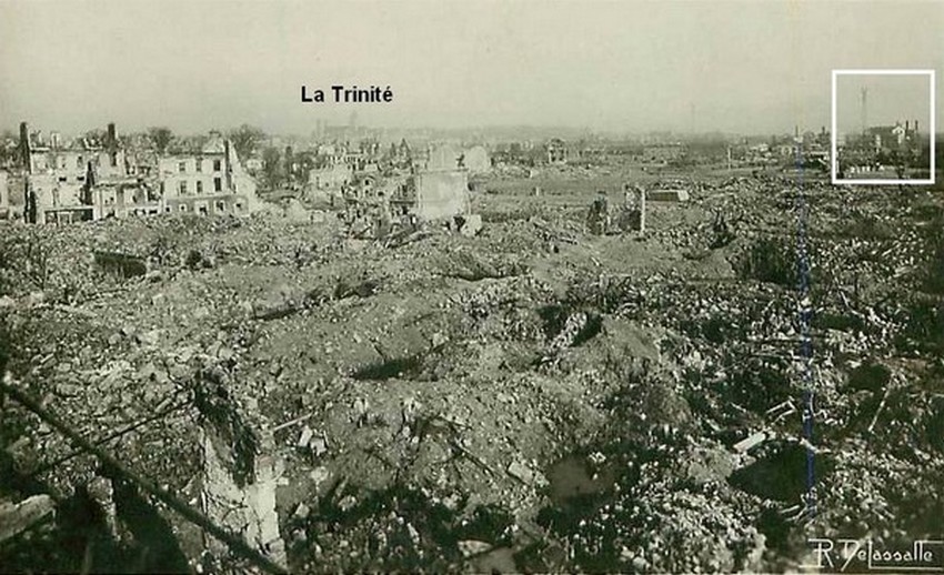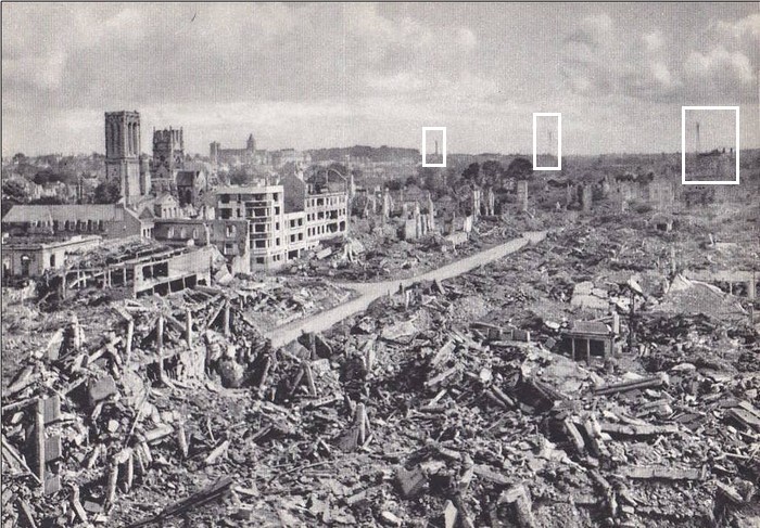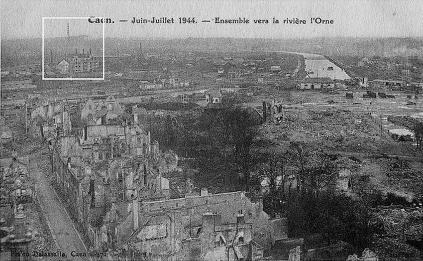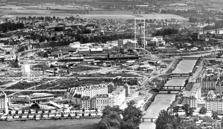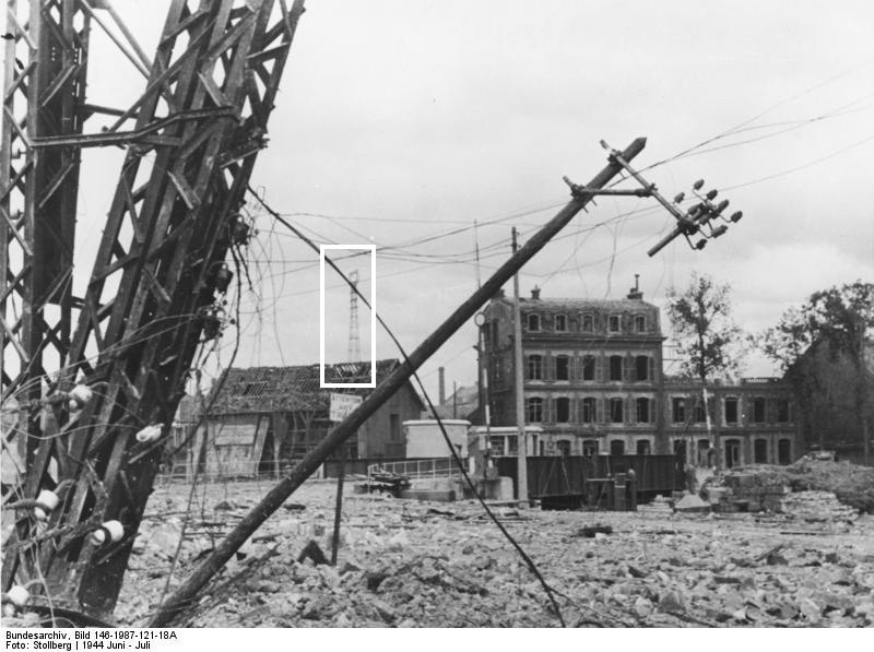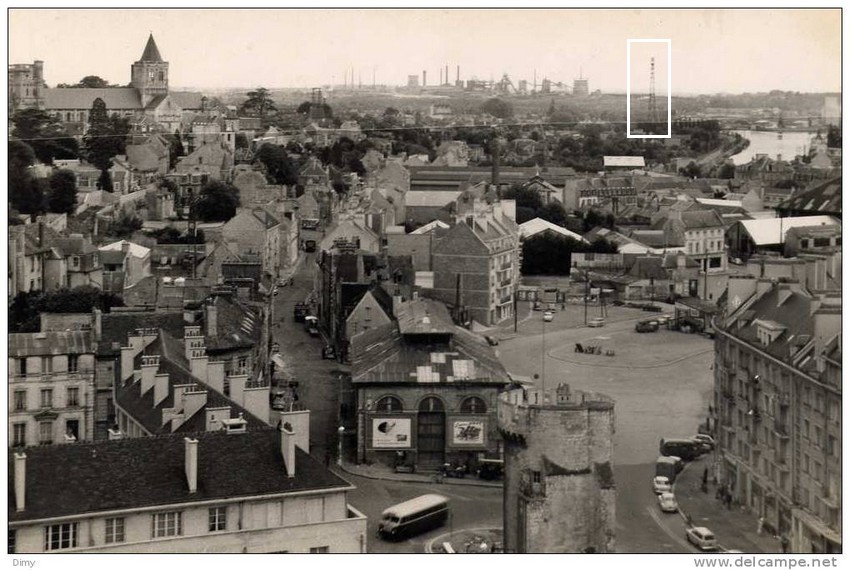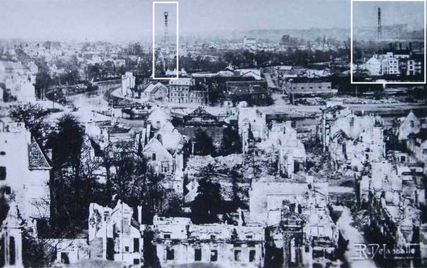 Source. Photo prise au Nord de la ville (voir repérage) avant guerre deux pylones de visibles.