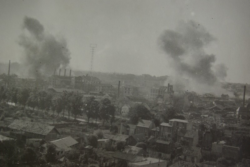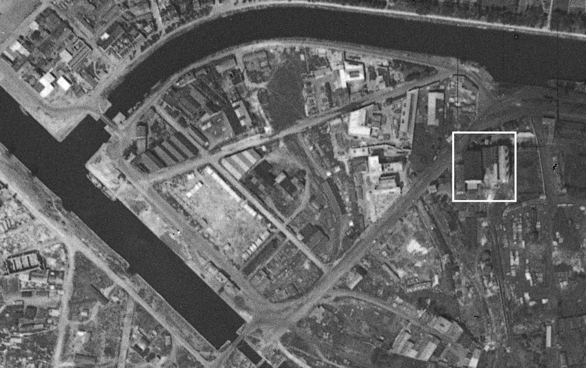 L'usine visible sur les photos précédentes apparait sur cette photo prise pendant les bombardements de la zone portuaire.