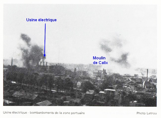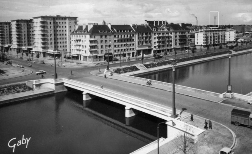 le pylône en arrière-plan est situé dans la zone portuaire : avenue Victor Hugo, Rue Dumont d’Urville, rue de Suède et Norvège; c'est celui que l'on voit sur les photos près du Moulin de Calix. De nos jours.