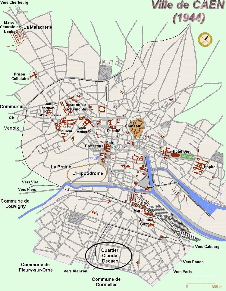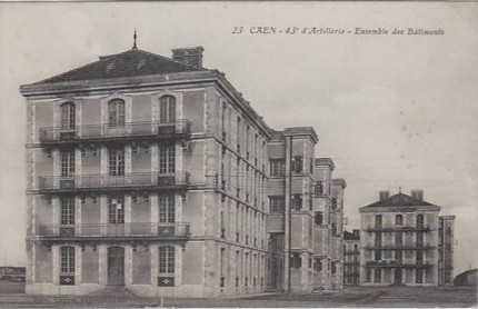 La caserne du 43e régiment d'artillerie (Quartier Claude Decaen à Vaucelles), située sur les hauteurs de la rive droite de Caen, a été construite à la veille de la Grande Guerre.