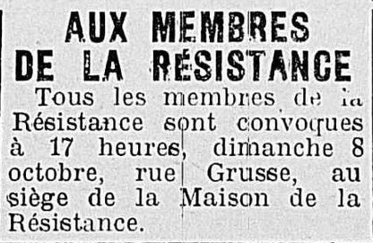 La compagnie casernée 1 rue Grusse à la Maison de la Résistance (au Nouvel Hôtel) est dissoute fin septembre 1944.