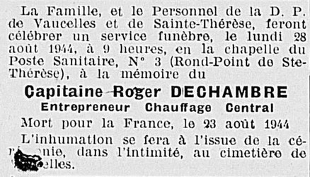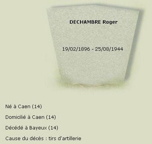 gravement blessé le 17 août 1944 à Crozy près de Falaise et meurt à l'hôpital de Bayeux le