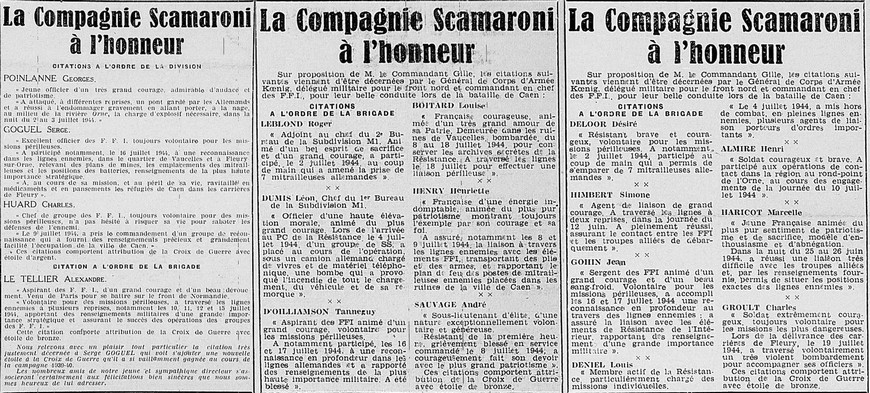 Source. A Bayeux le 14 juillet 1944, plusieurs membres de la Scamaroni: