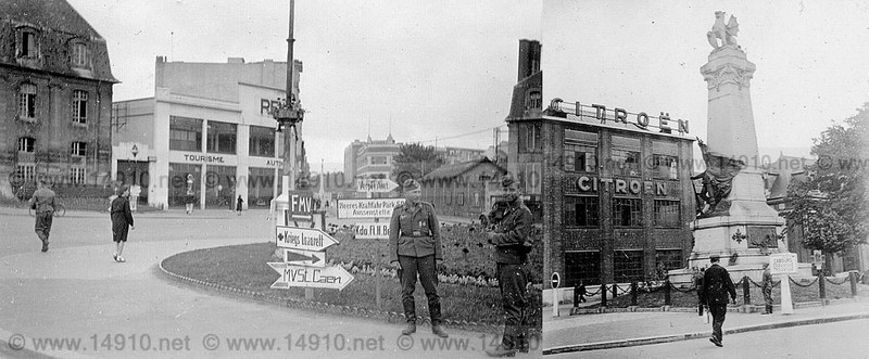 Source. Place du 36e RI. Voir la pancarte Heeeres Kraftfahr Park 50? (peut être 503) Aussenstelle (Antenne, succursale), la rue du 11 novembre est derrière avec le Monument aux morts de la guerre 14-18 en arrière plan.