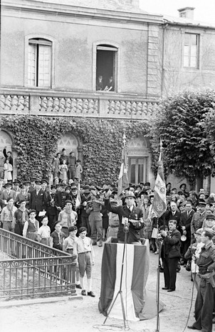 Source. Le 14 juillet 1944, Léonard Gille fait un discours à Bayeux devant