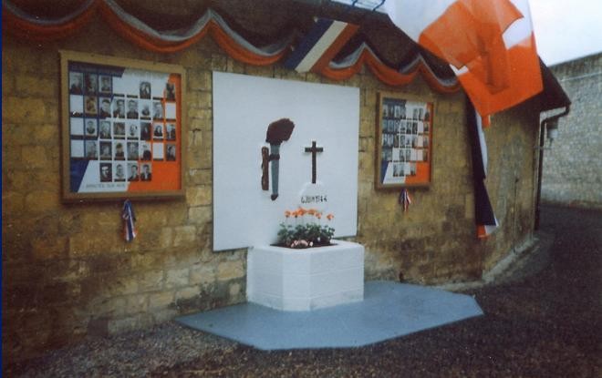Sa construction doit être postérieure au 6 juin 1945. Il semble que les familles ont toujours pénétré à l'intérieur de la maison d'arrêt pour se recueillir, mais en 1945, il n'est pas fait mention de l'existence d'un monument.