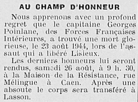 avec plusieurs de ses camarades participer à la libération de Lisieux en se