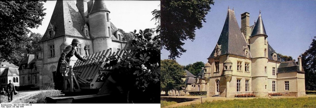 Source. 30 mai 1944. Montage un s. Reihenwerfer (20 Rohre) auf Fahrgestell Somua MCL S-307(f) au château de Lion sur Mer. Merci à Higgins.
