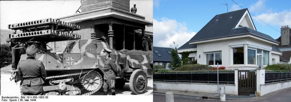 Montage: Lion-sur-Mer au Wn 21. la maison supportait un poste d'observation en bois. Merci à Higgins.