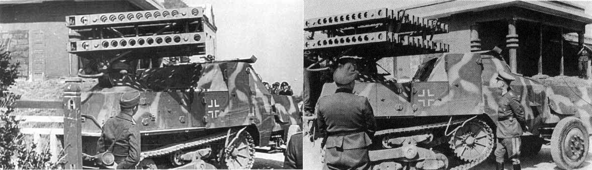 Source. schwere Reihenwerfer auf Somua MCL S 303 (f) Deux rangées de 10 tubes de mortiers de 81 mm Brandt ex-français. Deux véhicules seulement équipaient la 10./Pz.Art.Rgt. 155 (21.Pz-Div)