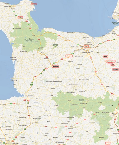 Carte des lieux indiqués dans le témoignage. AGRANDISSEMENT