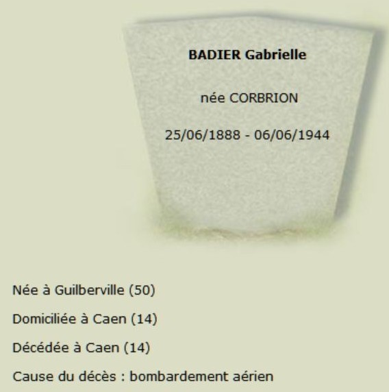 Jeanne Corbrion est décédée le 6 juin 1944 dans les bombardements liés au