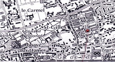 En rouge l'emplacement du bloc opératoire allemand