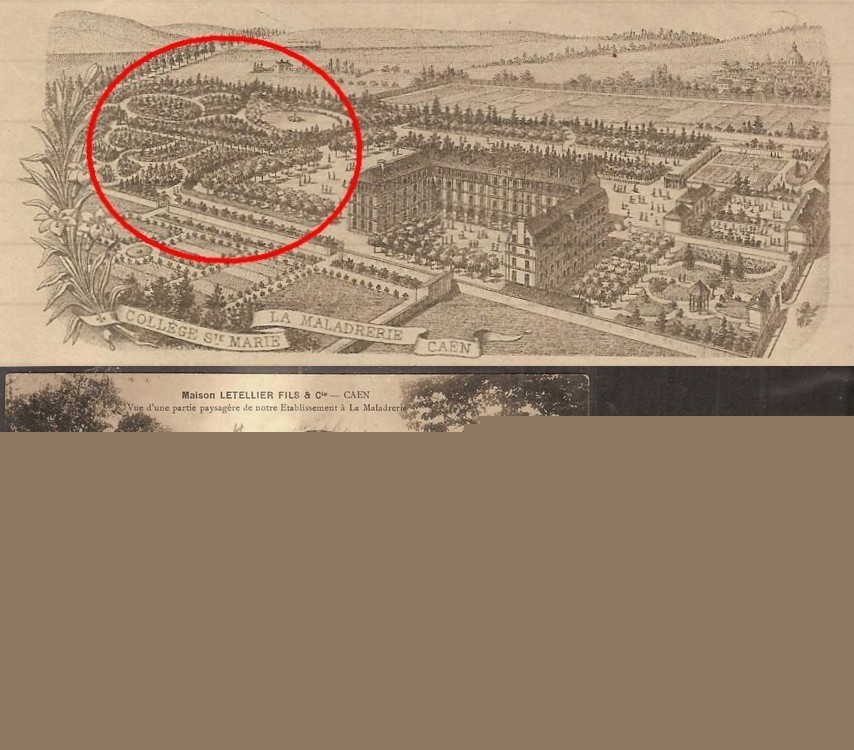 De cet endroit enchanteur, il ne subsiste aujourd’hui que de magnifiques arbres portant « une plaque d’identité » bordant la rue Claude Chappe qui a été ouverte lors de la création du quartier Beaulieu après l’ouverture du stade de football en 1994. Cette préservation est heureusement indiquée sur un petit panneau rappelant que ce quartier fut autrefois un quartier non seulement de pépinières et de carrières souterraines mais aussi un haut lieu de la Résistance caennaise avec le pépiniériste Robert Kaskoreff successeur de Letellier, qui y cachait des armes et qui sut également y abriter un grand nombre d’habitants du quartier durant les bombardements de juin et juillet 1944. Vue aérienne.