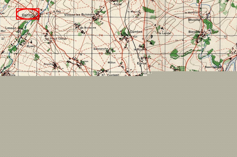 La carrière n'était pas dans le cercle rouge mais de l'autre côté de la rue de Bayeux face aux Pépinières. Sur le plan des Pépinières sont dessinées mais c'était en fait un terrain vague en 44.