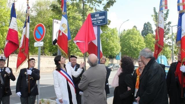 Source: Photo Ouest-France. Dans le quartier flambant neuf du Clos-Joli, la rue Marcel-Cimier a été inaugurée ce samedi matin à 11 h. Toute la famille de cet ancien déporté d'Auschwitz était présente.
