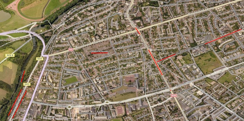 Localisation de la rue Ernest Manchon, de la caserne du 43e et des Coteaux de Fleury. AGRANDISSEMENT.
