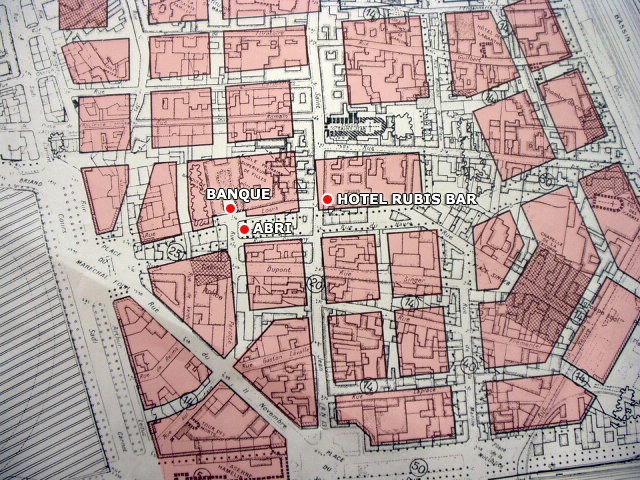 l'hôtel « Rubis Bar », rue Saint Jean. L'immeuble était situé face à la rue Saint Louis qui est aujourd'hui l'avenue de Verdun.