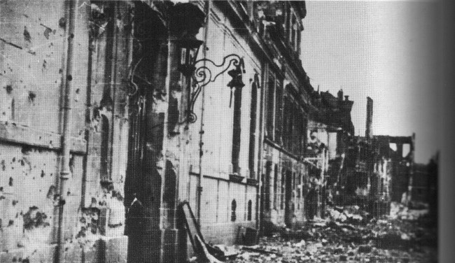 En fait ce furent des habitations du centre ville. En faisant chauffer son café au petit matin un soldat Américain avait malencontreusement mis le feu à son camion transportant de l'essence, et qui a ensuite fait exploser un camion de munitions.