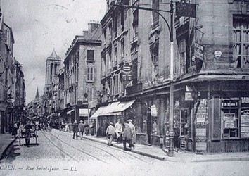 Deux vues de la Rue Saint-Jean avant et après la bataille de Caen.