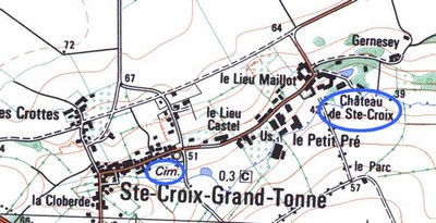 Le 15 juillet, nouveau déménagement pour la campagne à SAINTE-CROIXGRAND'TONNE (Note de MLQ: à 17 km à l'ouest de Caen) en territoire reconquis. Nous étions dans une cour de ferme près du château