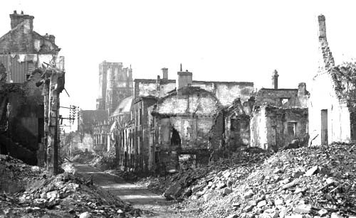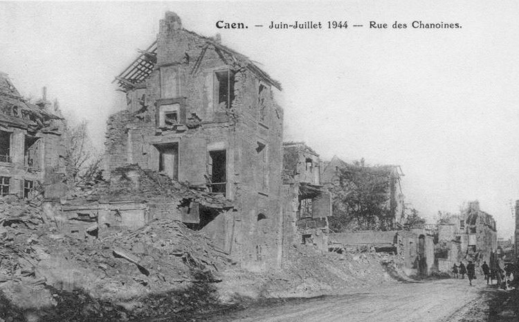Le bas de la rue des Chanoines, le 9 juillet 1944.
