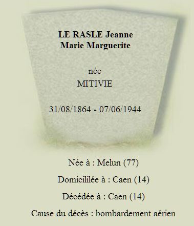 Le Mémorial des victimes civiles en Basse-Normandie ne recense qu'un seul Geoffroy tué le 5 août 1944 sans aucune autre précision, voir ci-dessous: